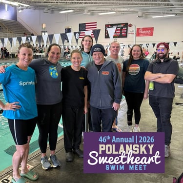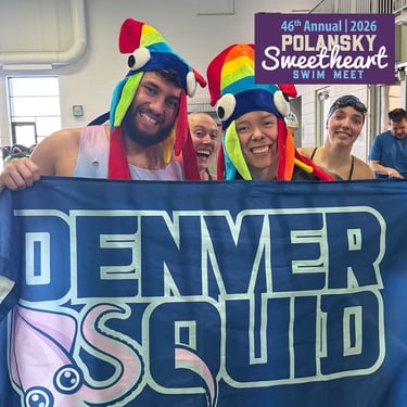 Middle left singing to pass the time between heats,. Middle center, thank you officials. Middle right, Denver Squids.
